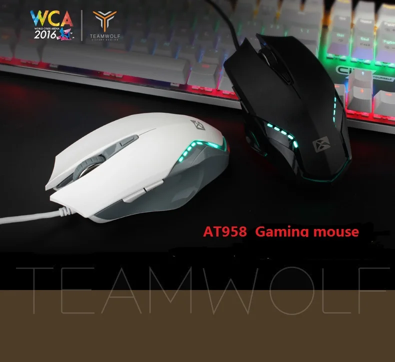 Original TEAMWOLF AT958 Wired Gaming Mouse USB Optical Breathing LED Lights Mouse Gamer 4000 DPI Fo