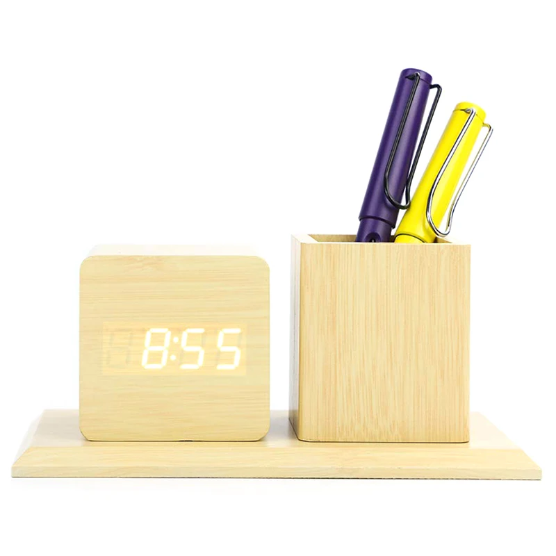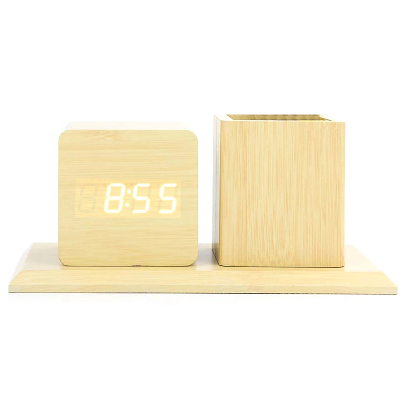 Alarm Clock Digital Electronic Led Clock Pencil Pen Holder Time and Date Temperature Display Table