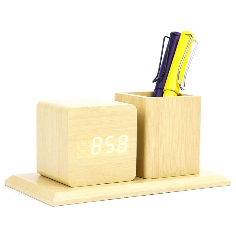HOT Sale Alarm Clock Digital Electronic Led Clock Pencil Pen Holder Time and Date Temperature Display Table