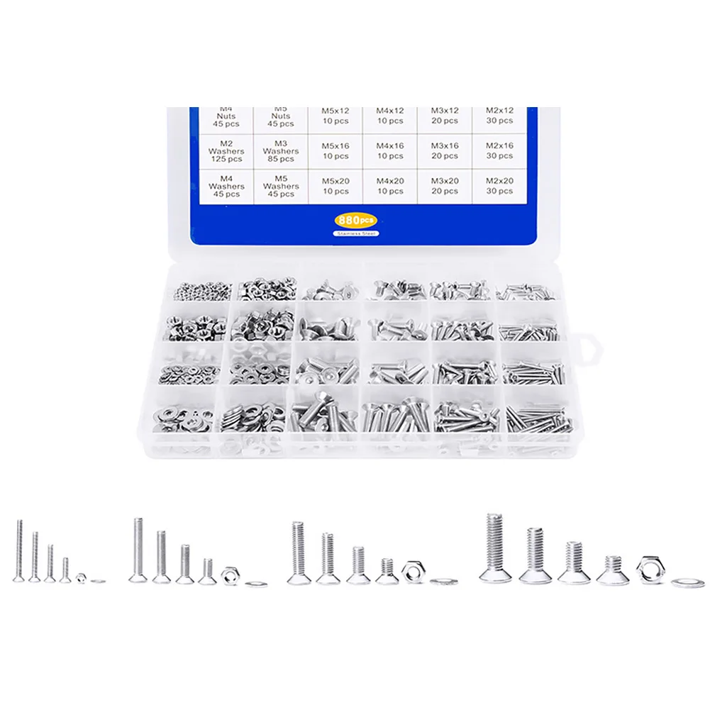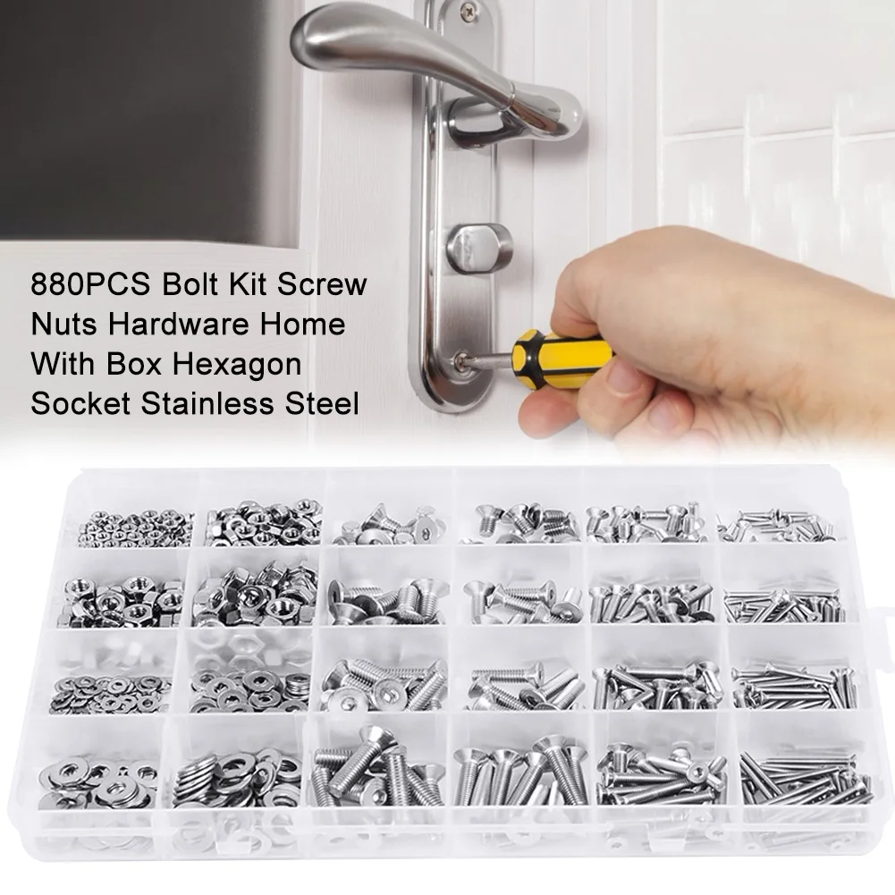 880PCS Hexagon Socket Home Screw Nuts Bolt Kit Electronics Washer Office Replacement With Box Stain